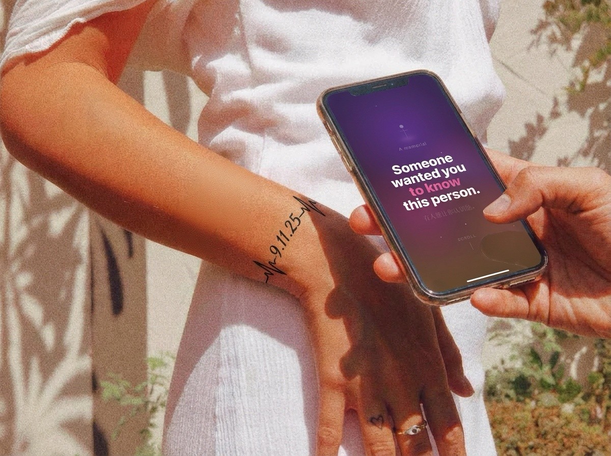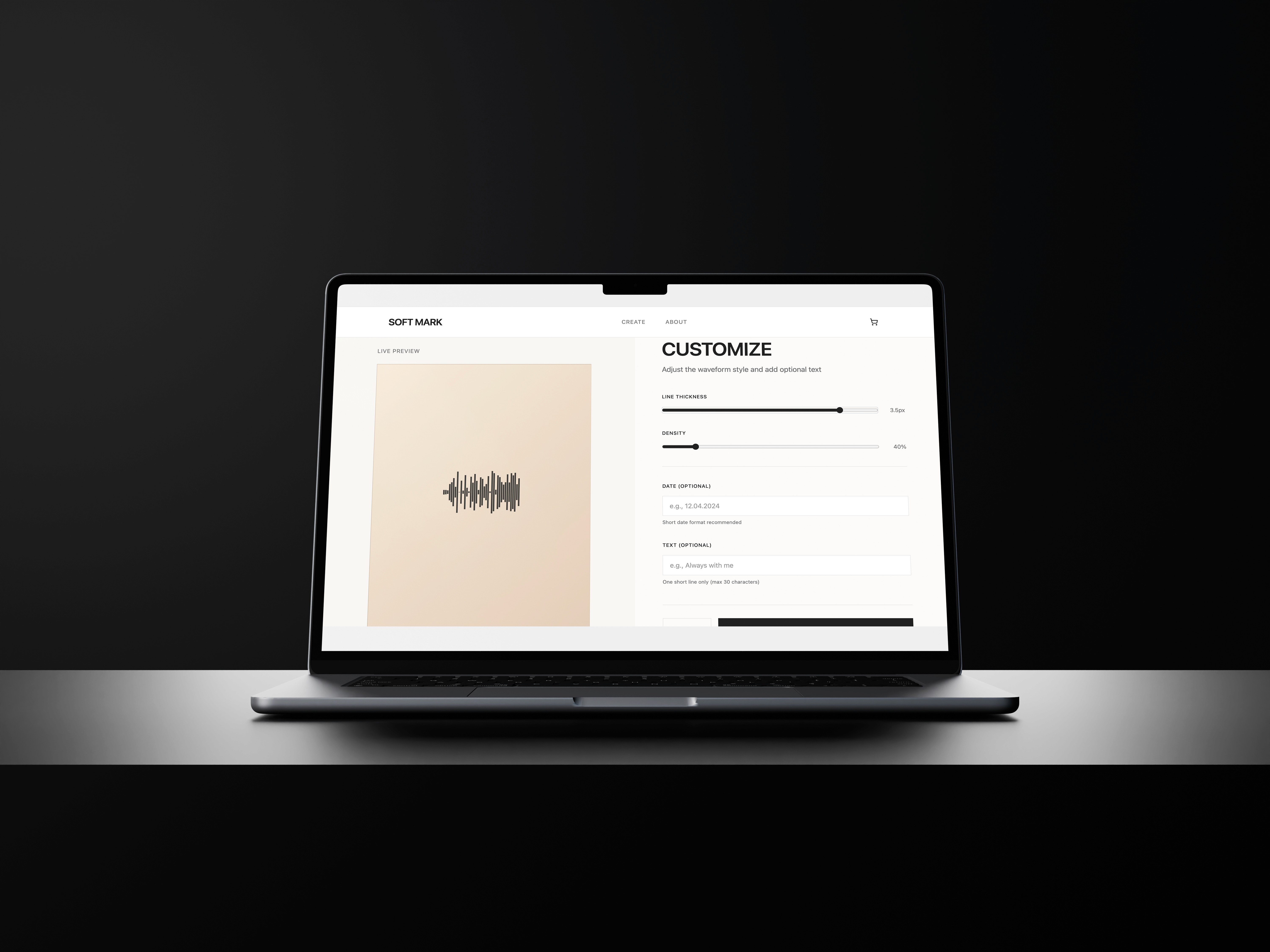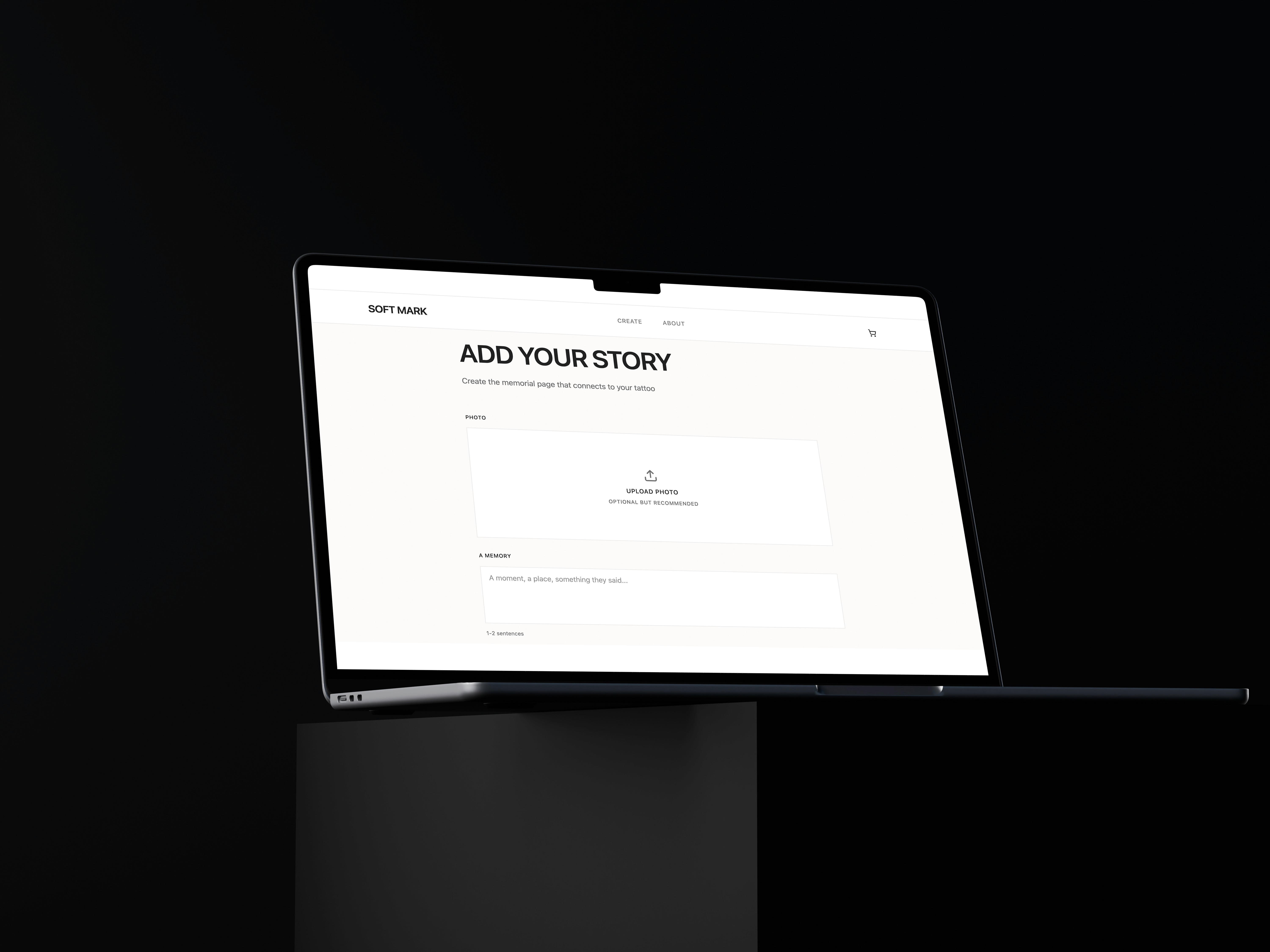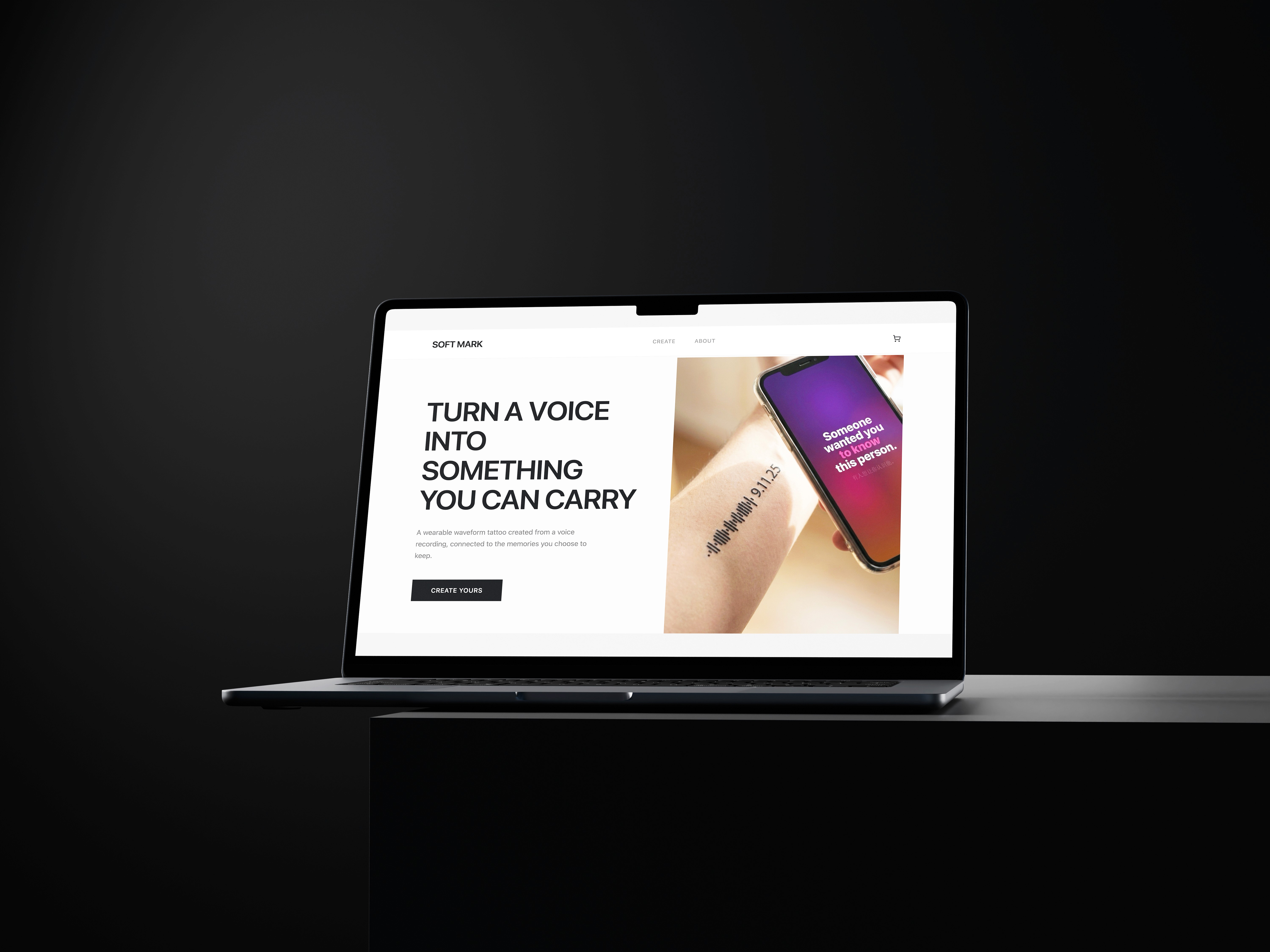This project explores how personal memories can be preserved and shared in everyday life beyond traditional memorial formats. While people often hold onto voices and small details of someone they have lost, there are few ways to carry and encounter these memories naturally. Soft Mark transforms a voice recording into a scannable waveform sticker that can be worn on the body. By scanning it, others can access a simple page that introduces the person through images, details, and a short story, allowing memory to exist as something both personal and quietly shareable.