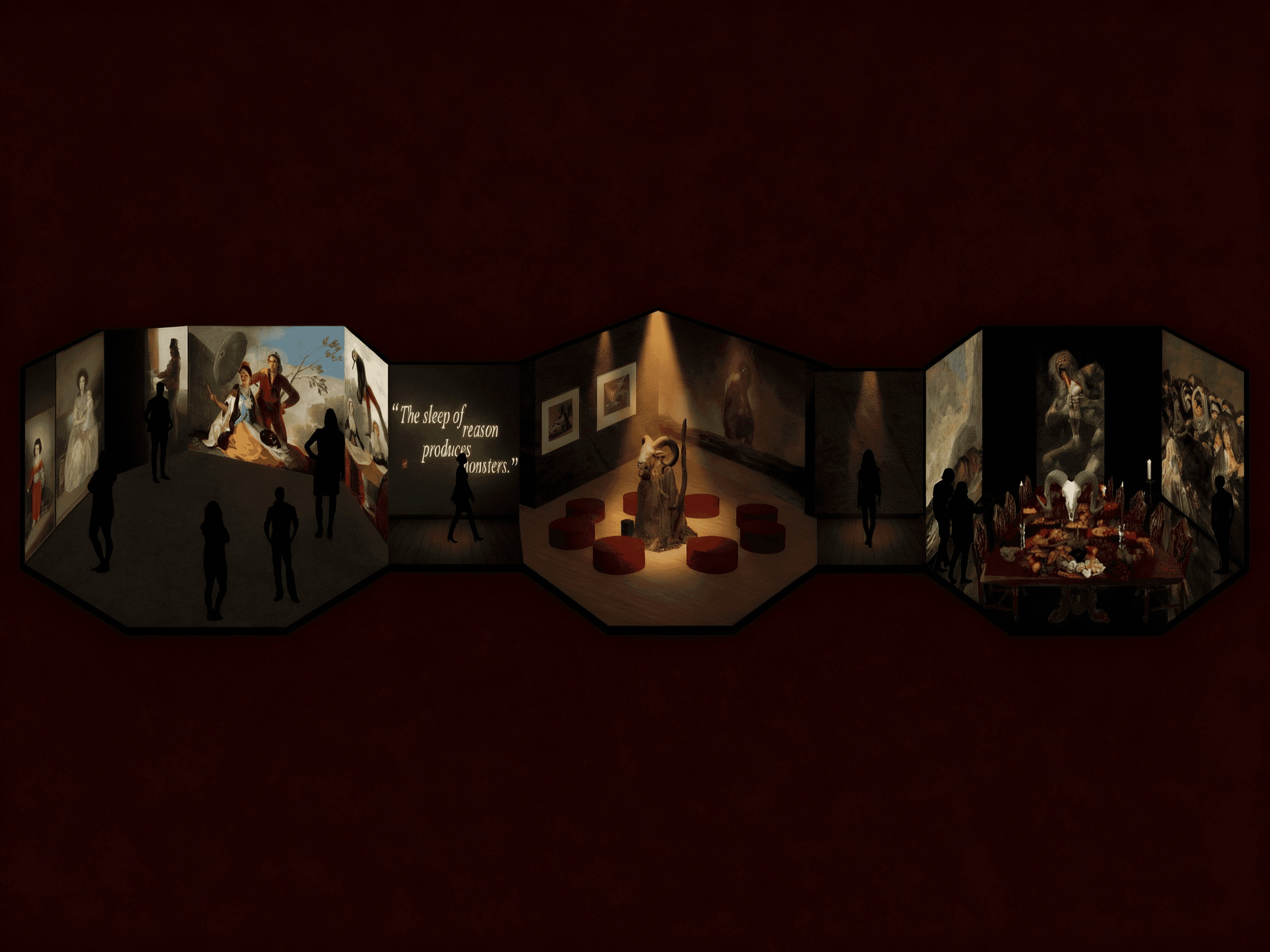 This project explores how an exhibition might leave a trace beyond visiting. After seeing many museums in New York, I noticed how the experience often ends at viewing, with little sense of personal involvement. Through an immersive format, this project aims to narrow that distance. Goya’s emotionally charged works provided a context where immersion could be pushed further.