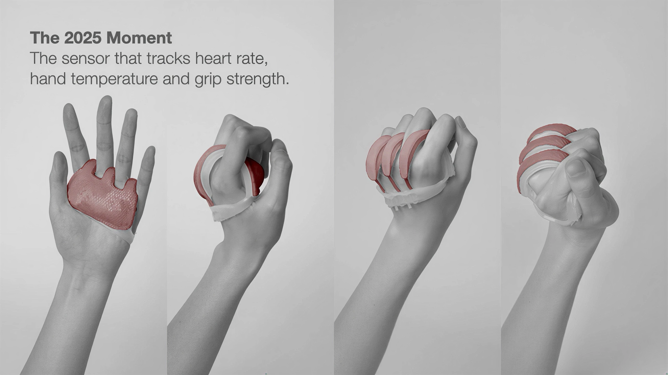 We first explored familiar forms for the heart rate sensor, such as watches or wristbands. Because the exhibition is meant to feel unsettling, we wanted the device to offer comfort instead of feeling cold or clinical. This led us to a hand-held design that creates a sense of security, similar to holding others' hands, while still functioning as a simple monitor.