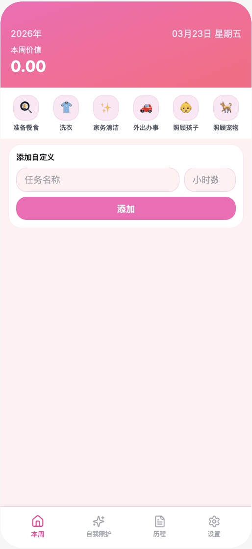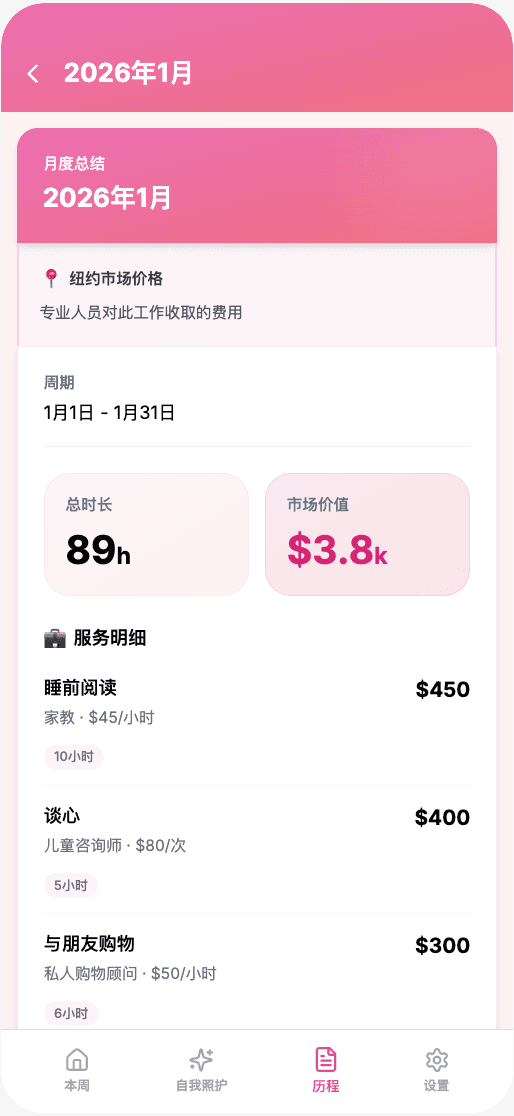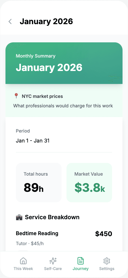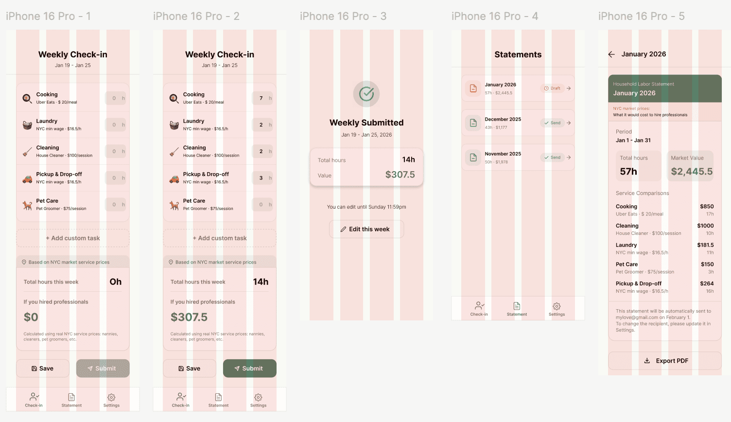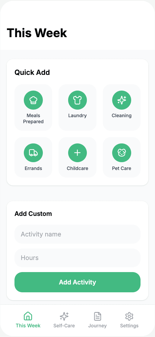 Invisible Pay is an app that translates domestic work into its economic value and presents it in a clear, familiar wage format.